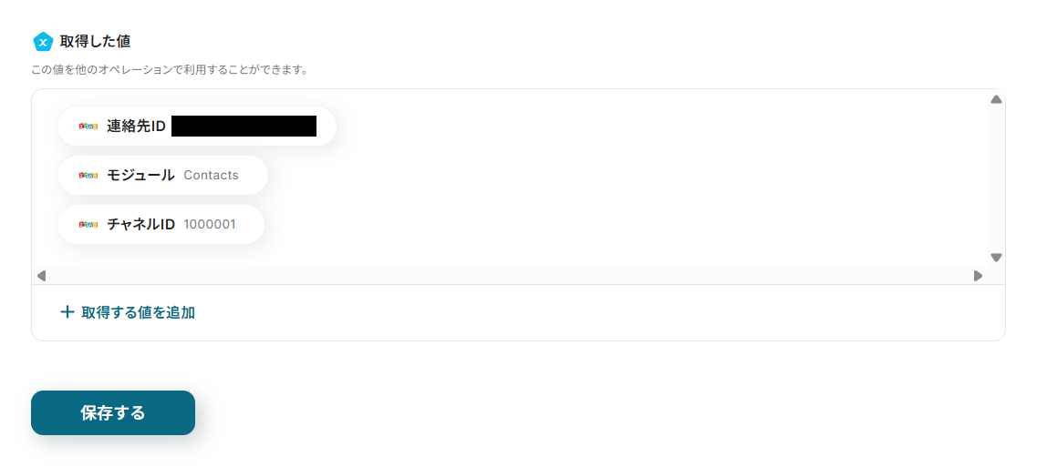 Zoho CRMから取得した値を登録する項目は、以下の画像のように設定します。