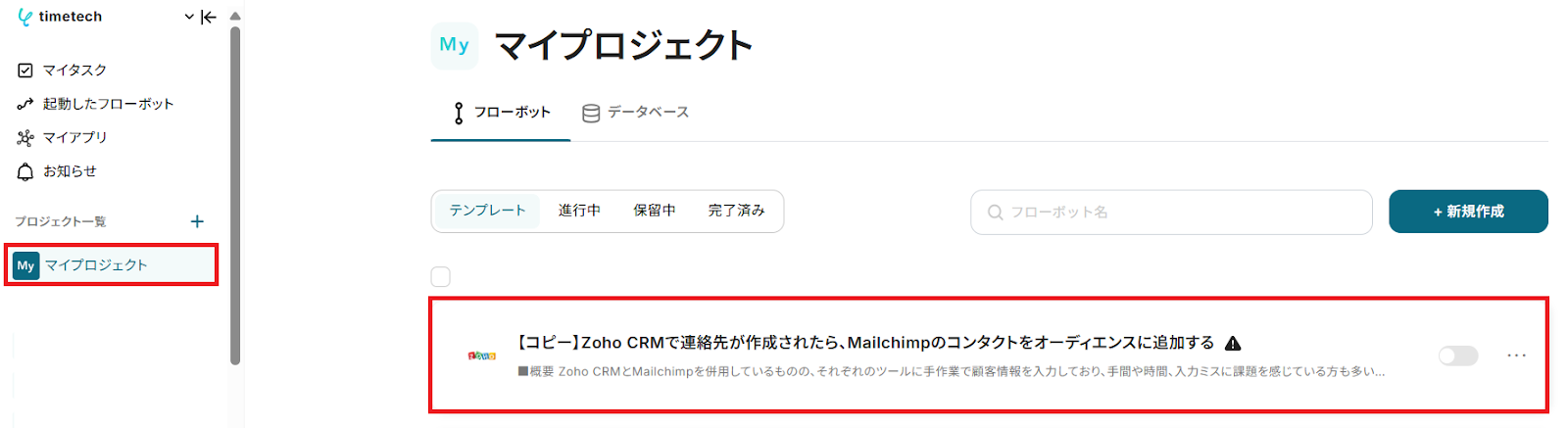 それでは、実際にZoho CRMとMailchimpを連携する自動化フローを作成していきましょう。