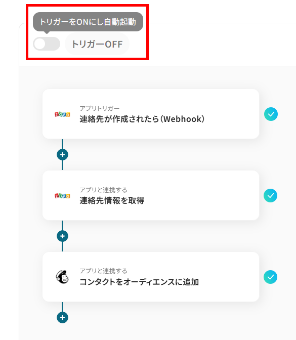 「トリガーをON」をクリックすると、すべての設定が完了です。
