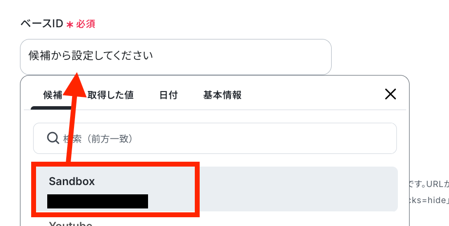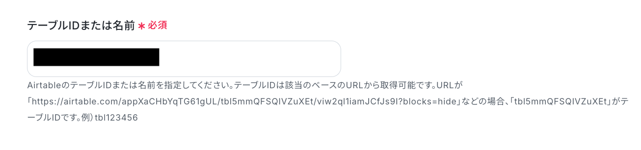 レコードを作成する先のベースIDとテーブルIDを、Airtable上で確認して記入してください。