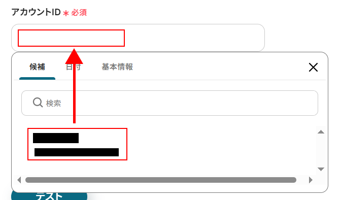 アカウントIDを設定します。 入力欄をクリックし、設定したいアカウントを選択してください。