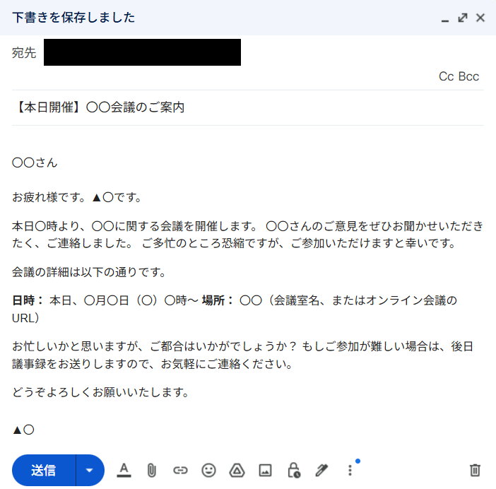 CC、BCCは今回は入力していませんが、利用をお考えの方はご入力ください。