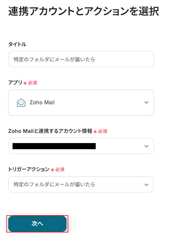 ステップ3:Zoho Mailの特定のフォルダにメールが届いた際の設定