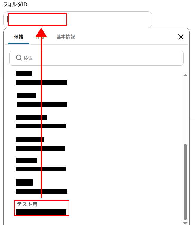 フォルダIDを設定します。 フォルダIDも先ほどと同様に、入力欄をクリックし設定したいフォルダを選択します。