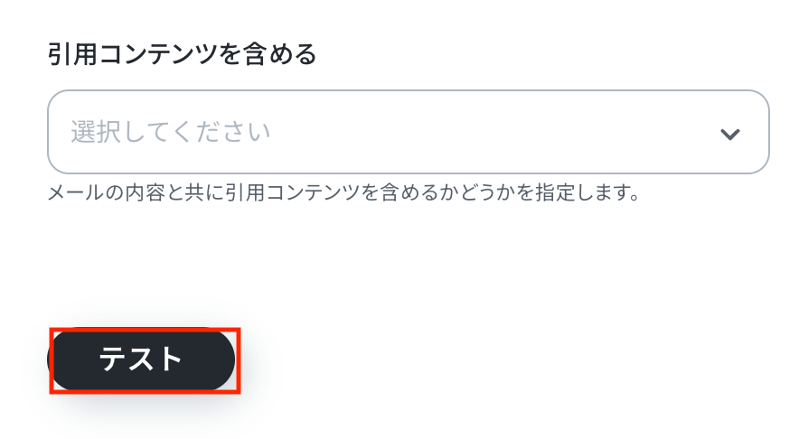 入力が完了したら「テスト」をクリックして設定した内容でメールの内容が取得されるか確認しましょう。