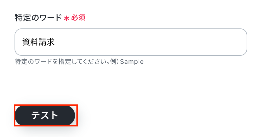特定のワード テスト用に受信したメールに含まれるキーワードを入力しましょう。