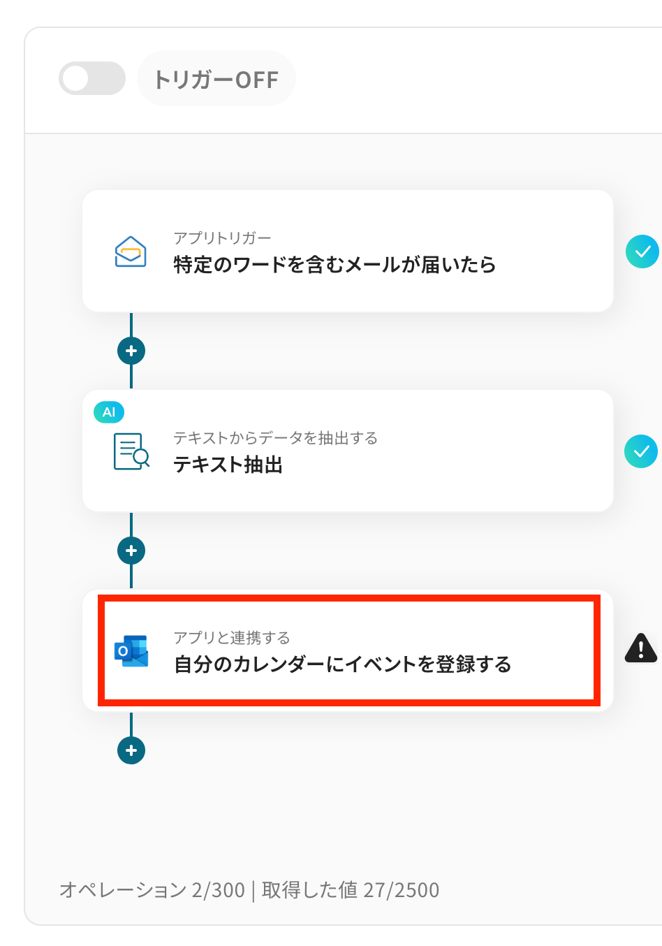 - Zoho Mailのトリガー設定、テキストの抽出設定およびOutlookのアクション設定