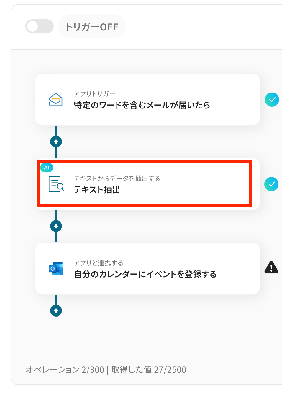- AIオペレーションの「テキストからデータを抽出する」をクリック。