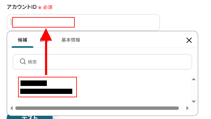 アカウントIDは、入力欄をクリックし、候補から選択します。