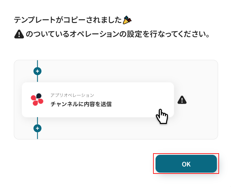 下記の画面が表示されますので、「OK」をクリックしてください。