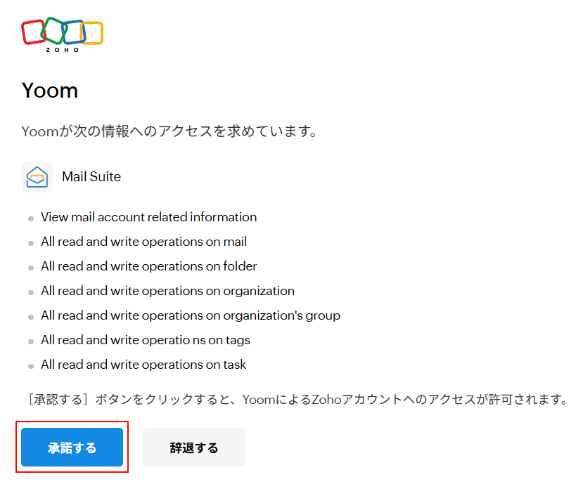 表示されている内容を確認し、問題なければ「承諾する」をクリックします。