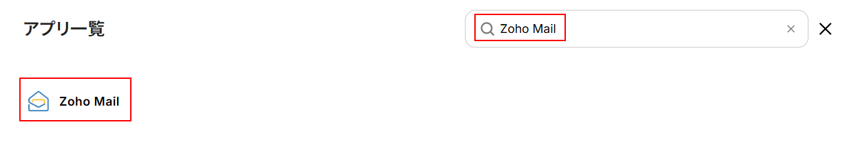 入力欄にZoho Mailと入力すると、Zoho Mailのアイコンが表示されますので、クリックしましょう。