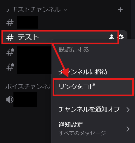 チャンネルのURLの取得方法 チャンネルを右クリック>リンクをコピーを選択