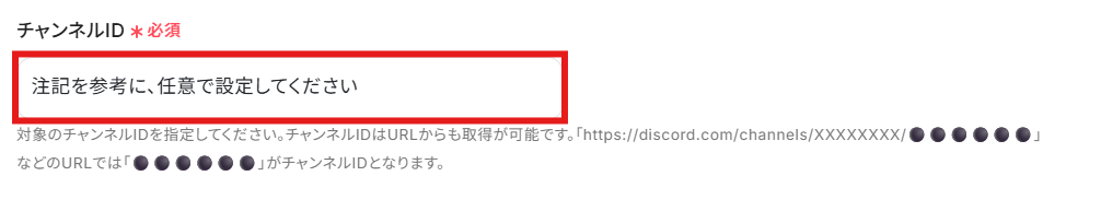 今回のフローでメッセージを送信したいチャンネルの「チャンネルID」を、注釈に沿って手動で入力しましょう。