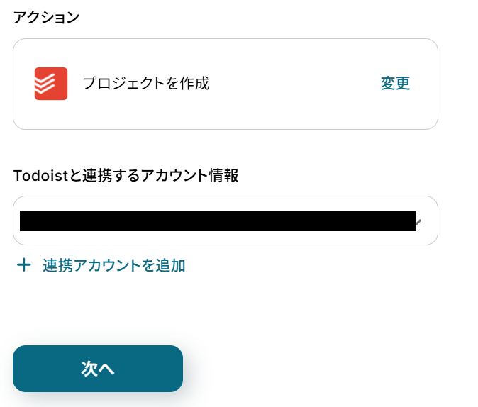 Todoistと連携するアカウント情報を確認したら、次のページに進みます。