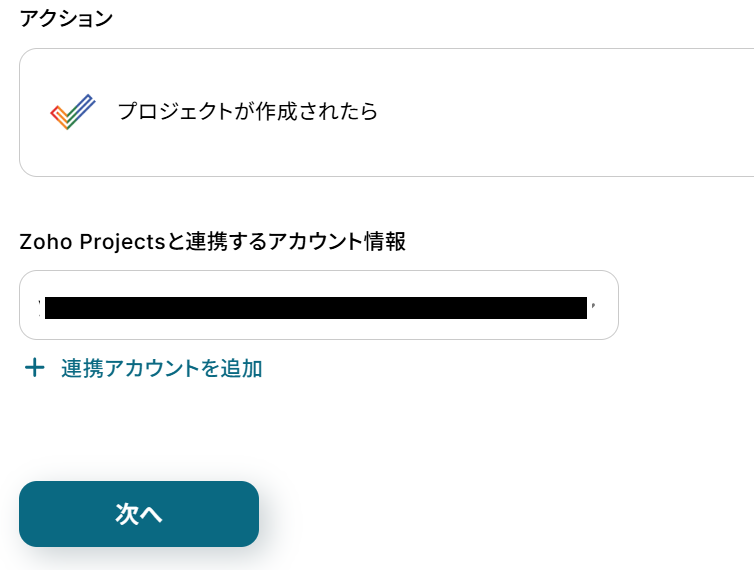 Zoho Projectsと連携するアカウント情報を確認し、次のページに進みましょう。