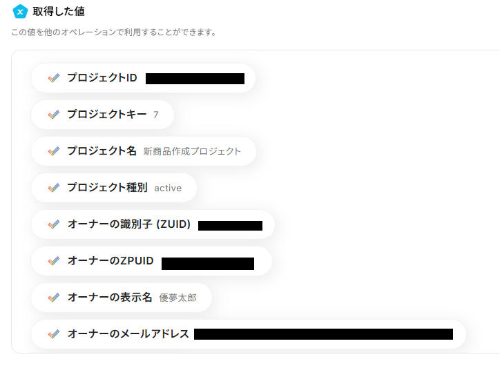これらの値は、後続のオペレーション設定で利用でき、フローボットを起動するたびに内容が更新されます。