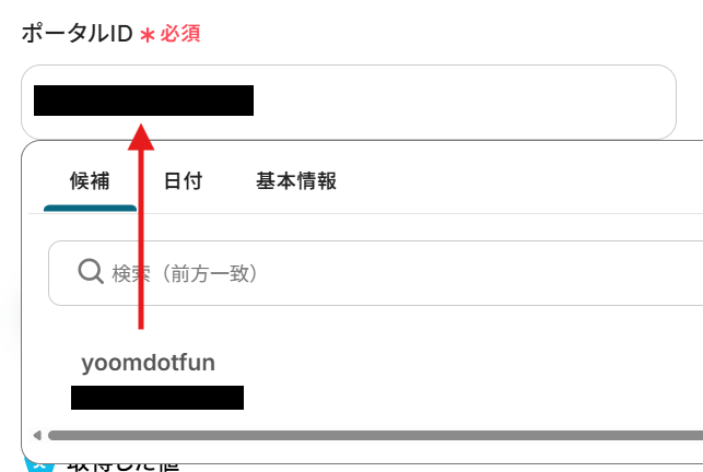 ポータルIDは、枠内をクリックし表示される候補から選択してください。
