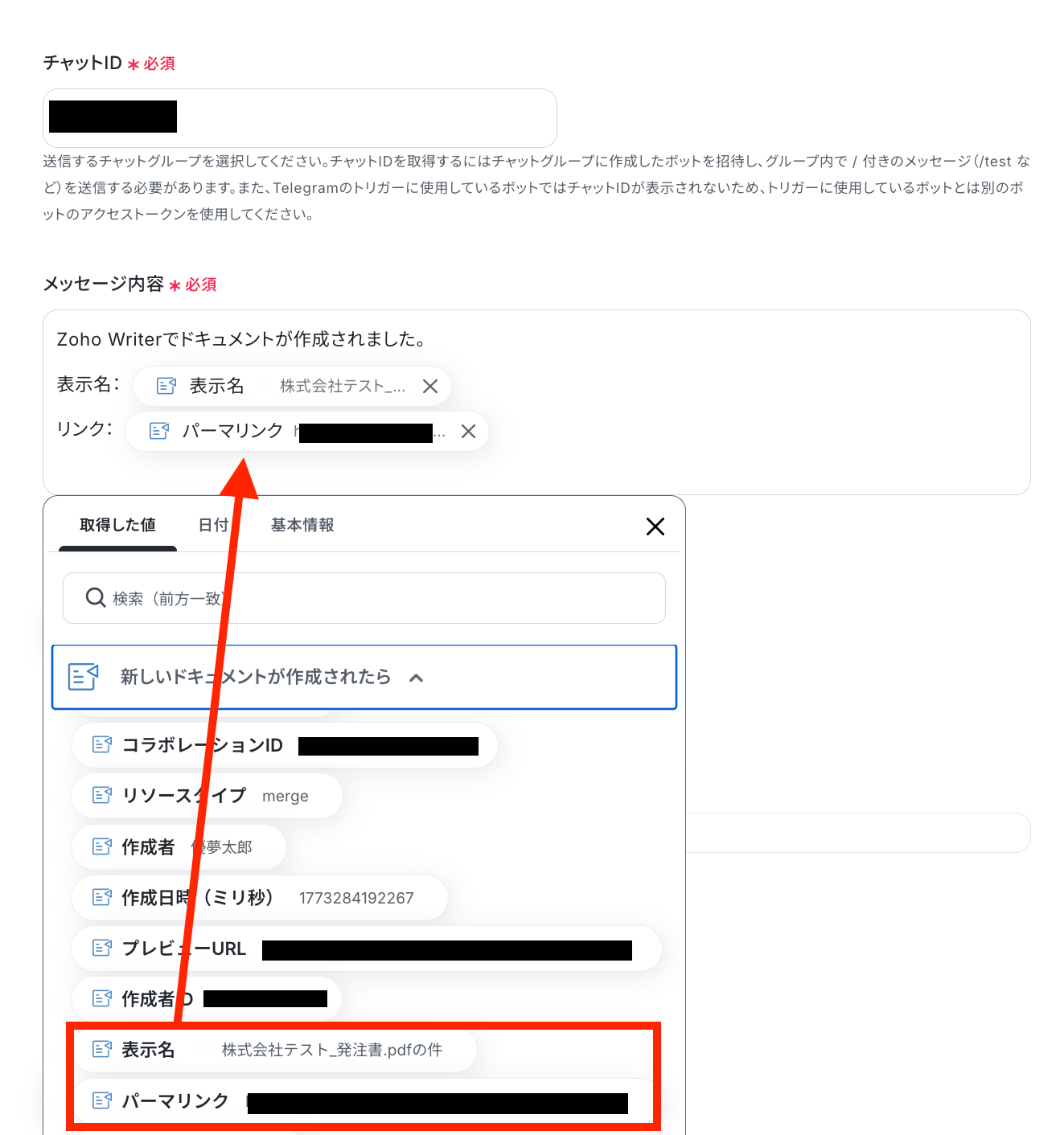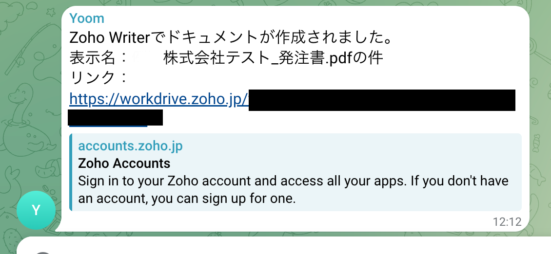 これで、Zoho Writerに書類が作成されると、自動的にTelegramでメッセージが送信されるようになります!