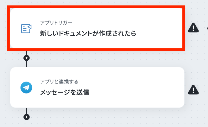 Google Driveのトリガー設定では、通知の対象としたいフォルダを任意で設定してください。 Telegramの通知アクションでは、通知先のチャットIDを設定する必要があります。また、メッセージ内容は固定テキストの他、前のステップで取得したファイル名やURLなどの動的な情報を組み込むことも可能です。 ■注意事項