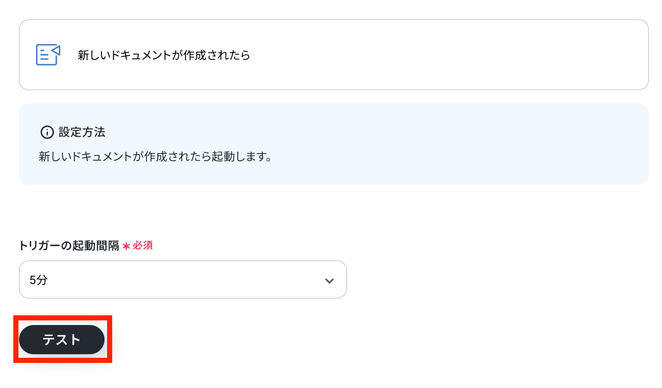 トリガーの起動間隔を選択してください。 5分、10分、15分、30分、60分のいずれかで設定可能です。 選択できる最短の起動間隔を選びましょう。