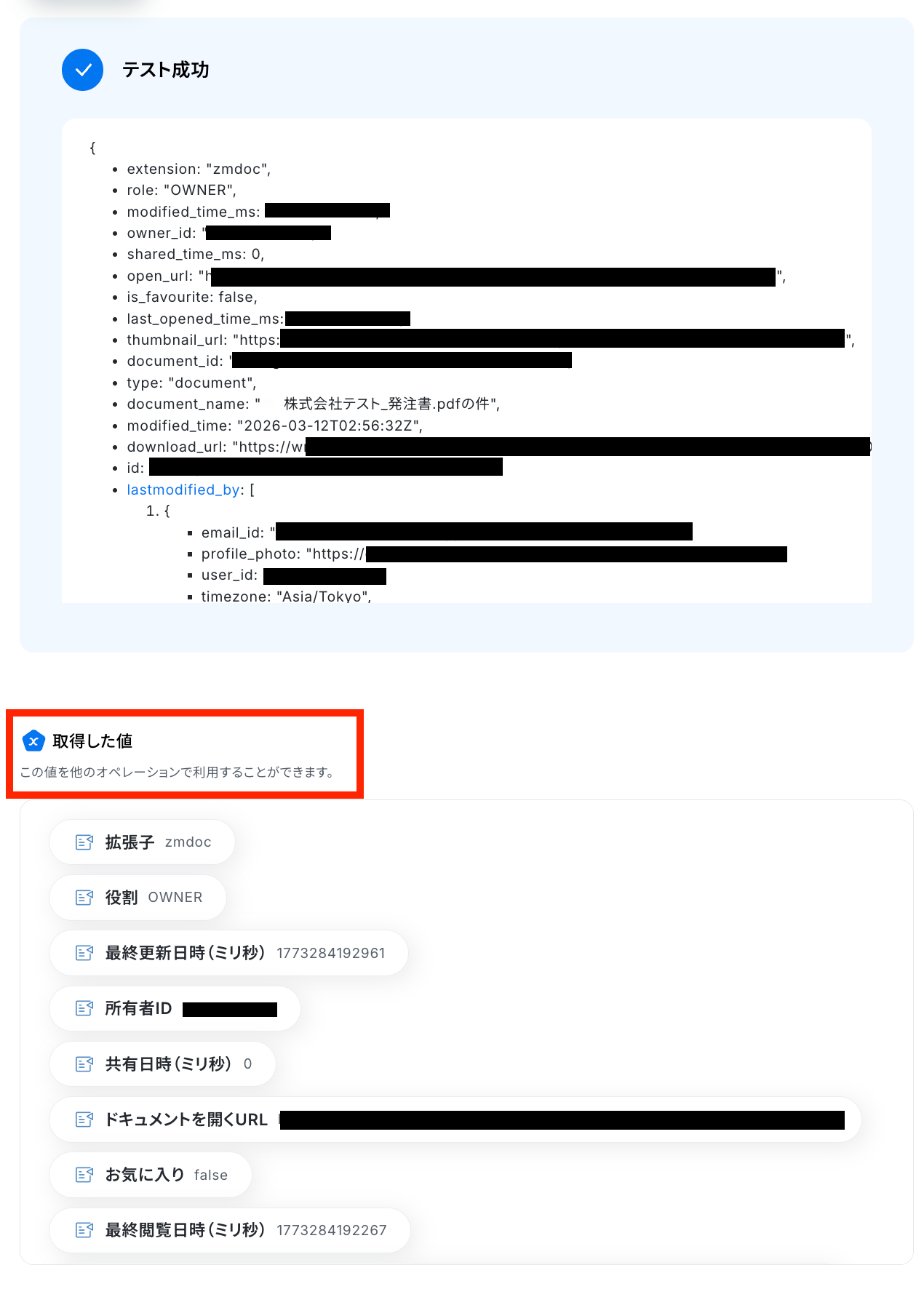 Zoho Writerで新規ドキュメントを作成する際に、タイトルや本文などの各項目に、トリガーとなったGoogleドキュメントから取得した情報を自由に設定できます。 ■注意事項