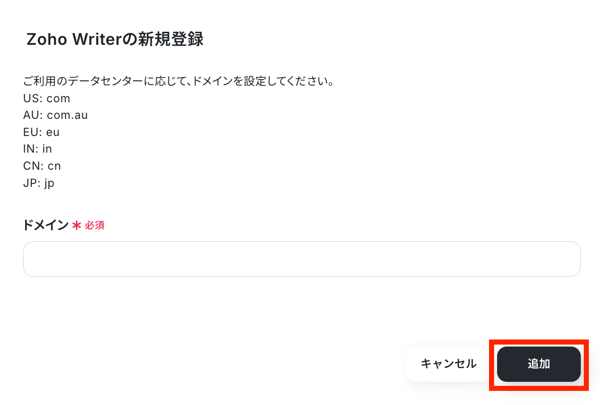 ドメインを記入して、「追加」ボタンをクリックしましょう!