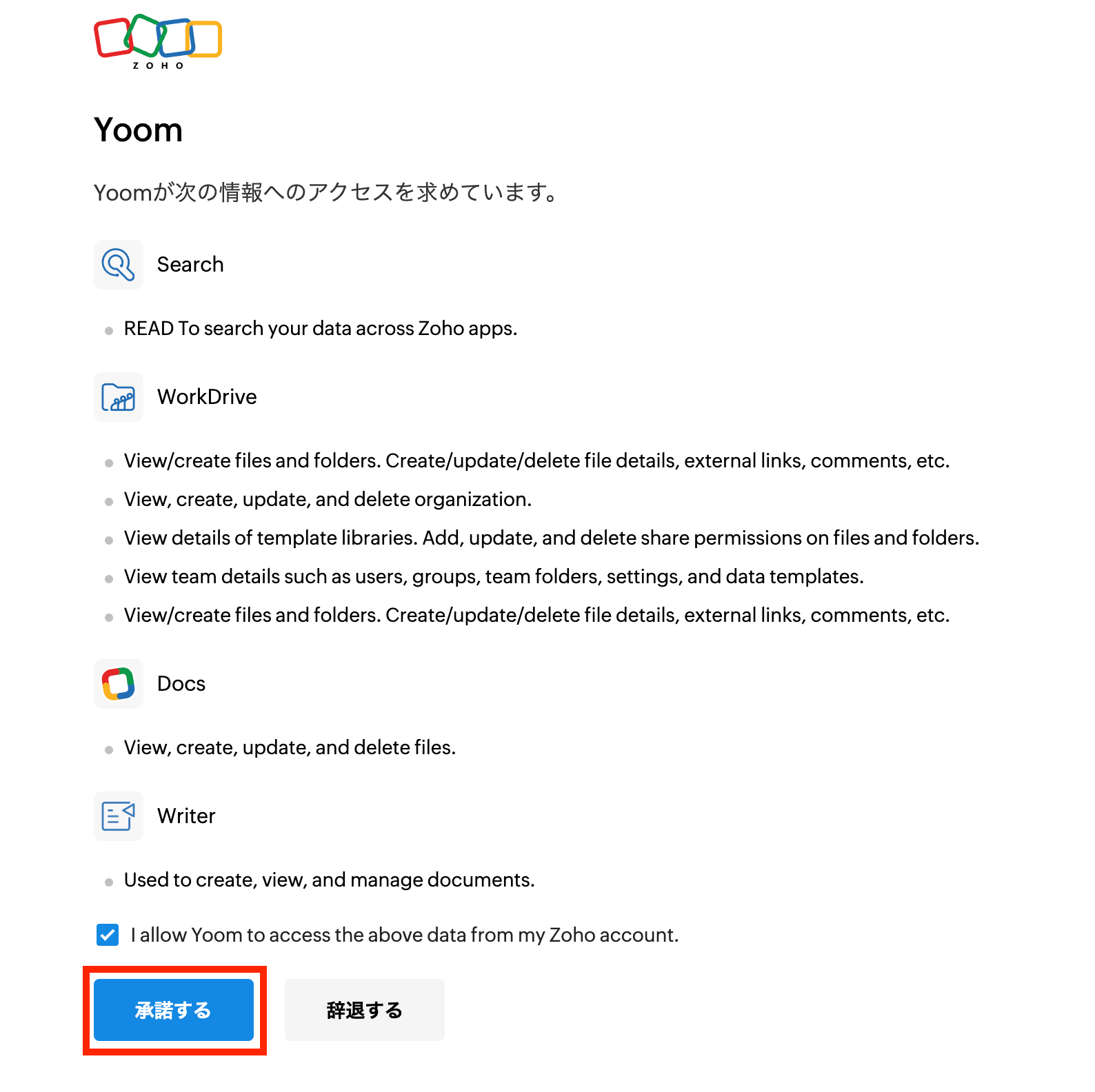 チェックマークにチェックを入れて「承諾する」ボタンを押します。