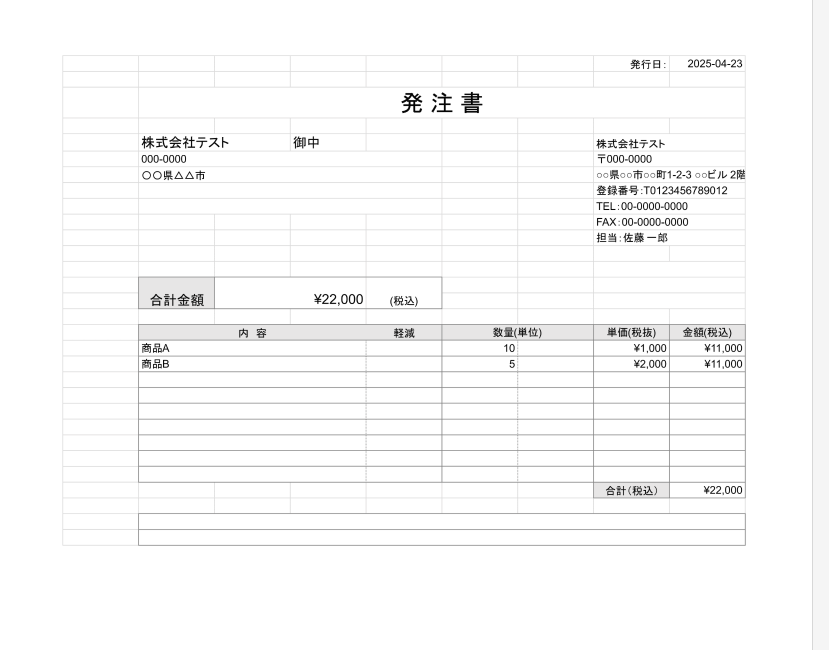 Zoho Writer上で書類の作成を行います。 今回は次のような書類をテストとして使用します!