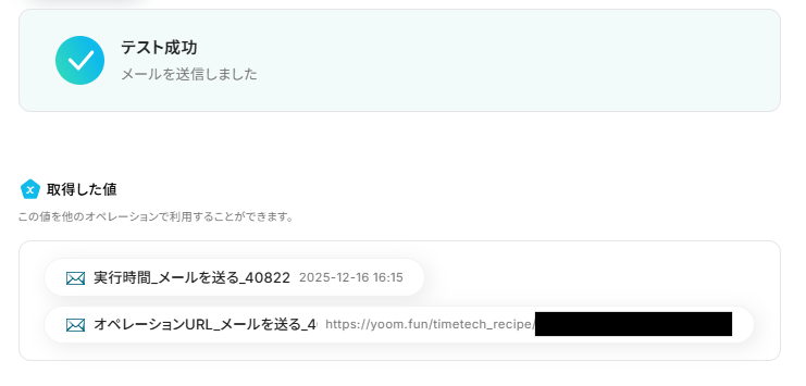 ※取得した値 とは? トリガーやオペレーション設定時に、「テスト」を実行して取得した値のことを指します。 後続のオペレーション設定時の値として利用でき、フローボットを起動する度に変動する値として引用できます。