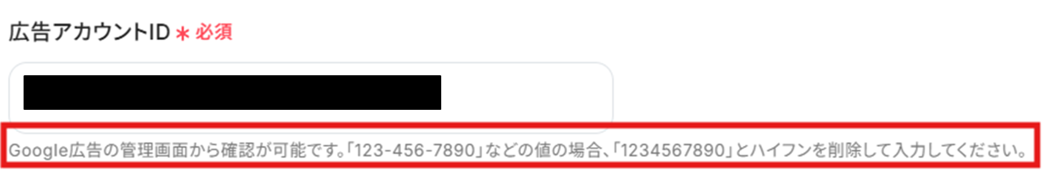 赤枠内の説明を参考にして、連携したい広告アカウントIDを入力してください。