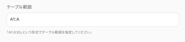 テーブル範囲はシートに値が入っている範囲の「A1:A」としました。