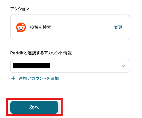 - Redditへの投稿アクションでは、投稿先のサブレディット名、投稿のタイトル、投稿の種類、投稿の本文などを自由に設定してください。