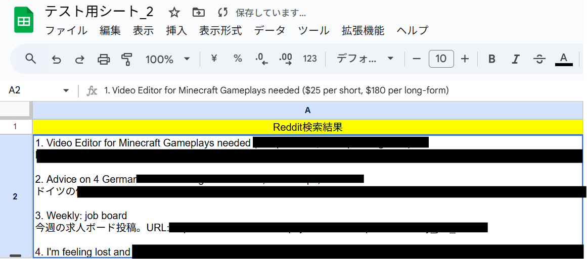 該当のGoogle スプレッドシートも見に行きましょう。Redditの検索結果が記録されています。