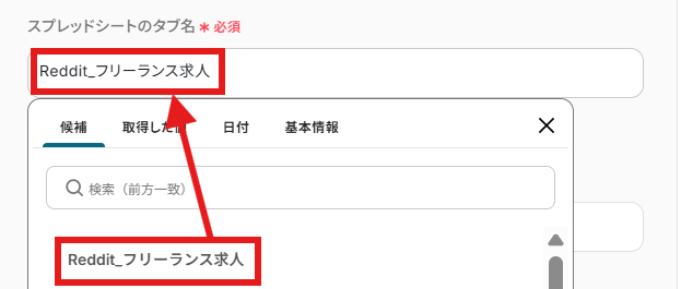- Redditの「投稿を検索」アクションでは、探したいフリーランス案件のキーワードや検索対象の期間、投稿の並び順などを任意で設定してください。