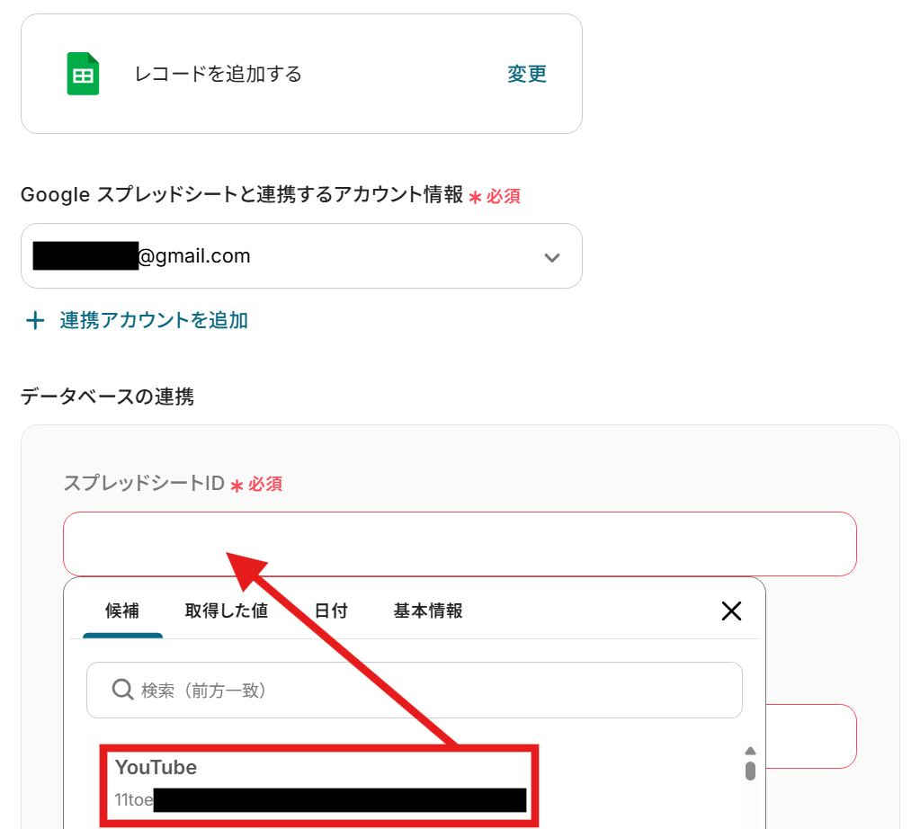 YouTubeにコメントが追加されたら、Google スプレッドシートにレコードを追加する