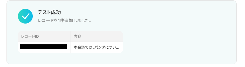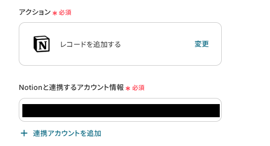 - 最後に、オペレーションでNotionの「レコードを追加する」アクションを設定し、Geminiが生成した要約を指定のデータベースに追加します