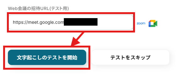 Google Meetで会議を開始したのち、「文字起こしのテストを開始」をクリックします。