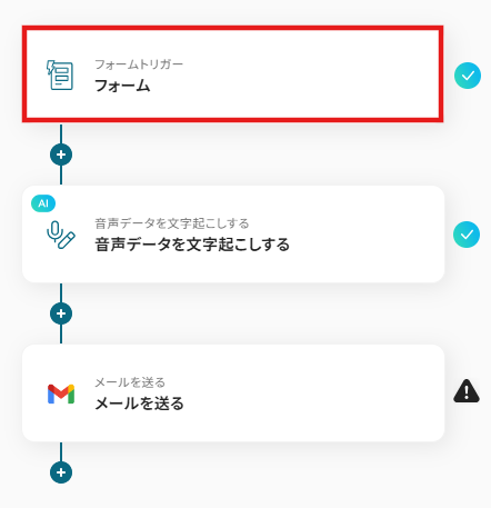 それではここから代表的な例として、フォームで音声ファイルが送信された際に、AIで文字起こししてGmailで通知するフローを解説していきます!