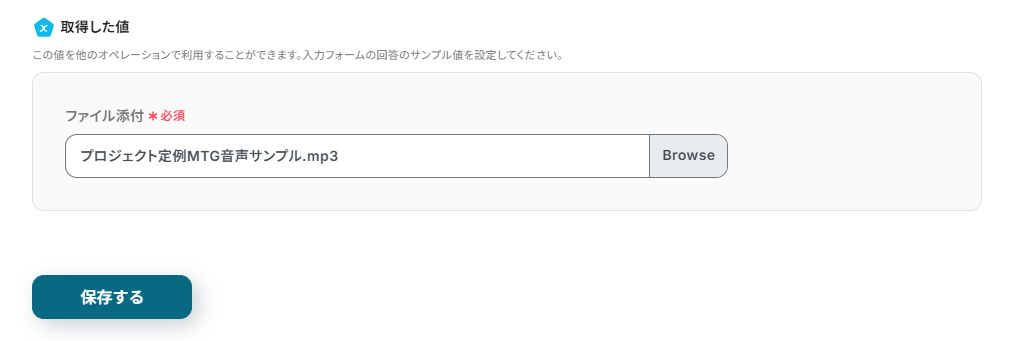「フォームで音声ファイルが送信されたら、AIで文字起こししてGmailで通知する」フローは、音声データの管理と通知業務を効率化する業務ワークフローです。