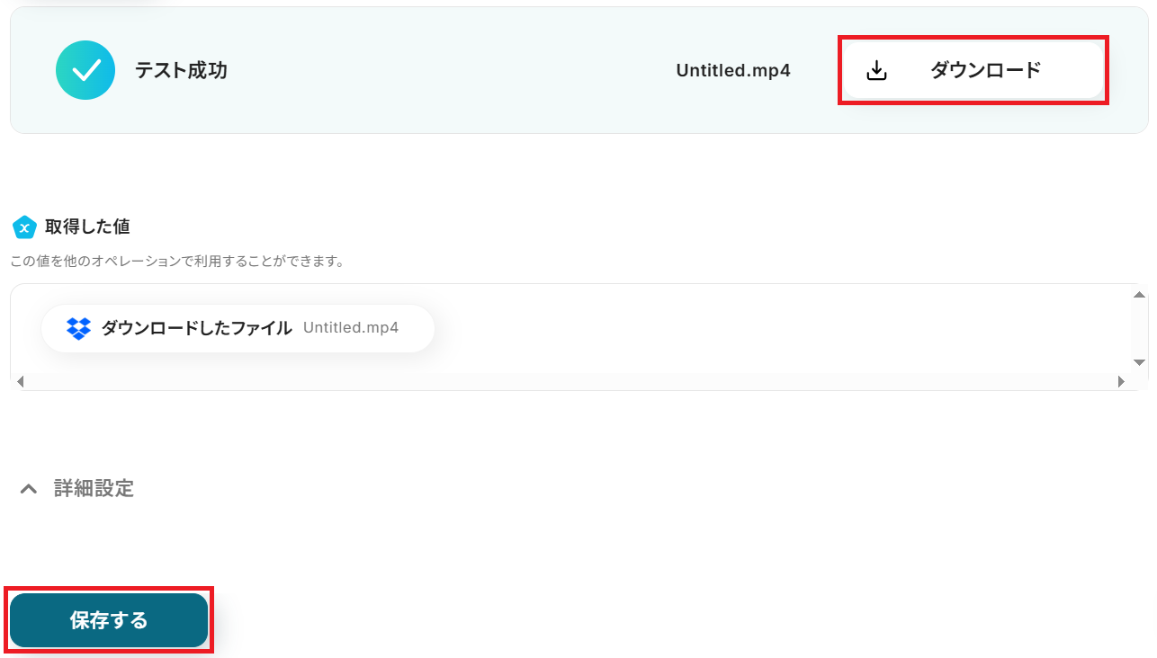 ステップ4:Dropboxでファイルをダウンロードする設定