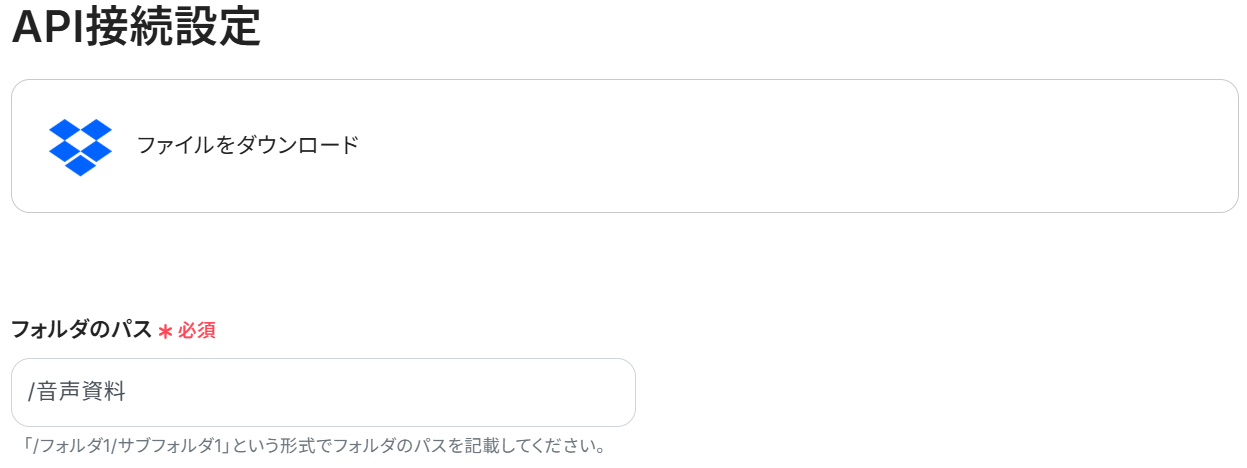 次に、ファイルを格納したフォルダのパスを入力してください。今回でいうと「/音声資料」です。