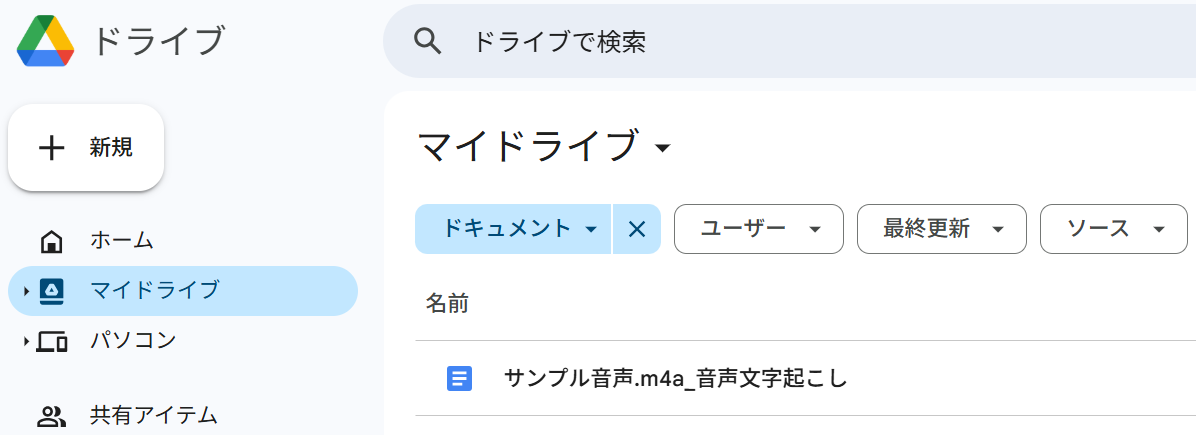 Googleドキュメントが新規作成され、Google Driveのマイドライブに格納されました!