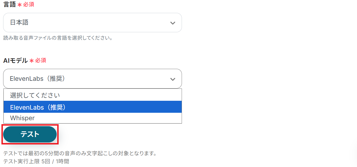 ステップ5:文字起こし設定