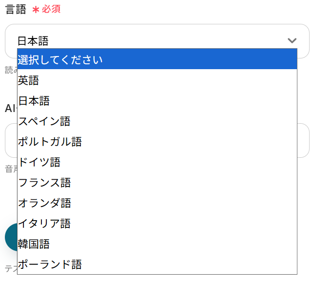A:対応拡張子は.mp3、.mp4、.mpeg、.mpga、.m4a、.wav、.webm、対応言語は以下の通りです。