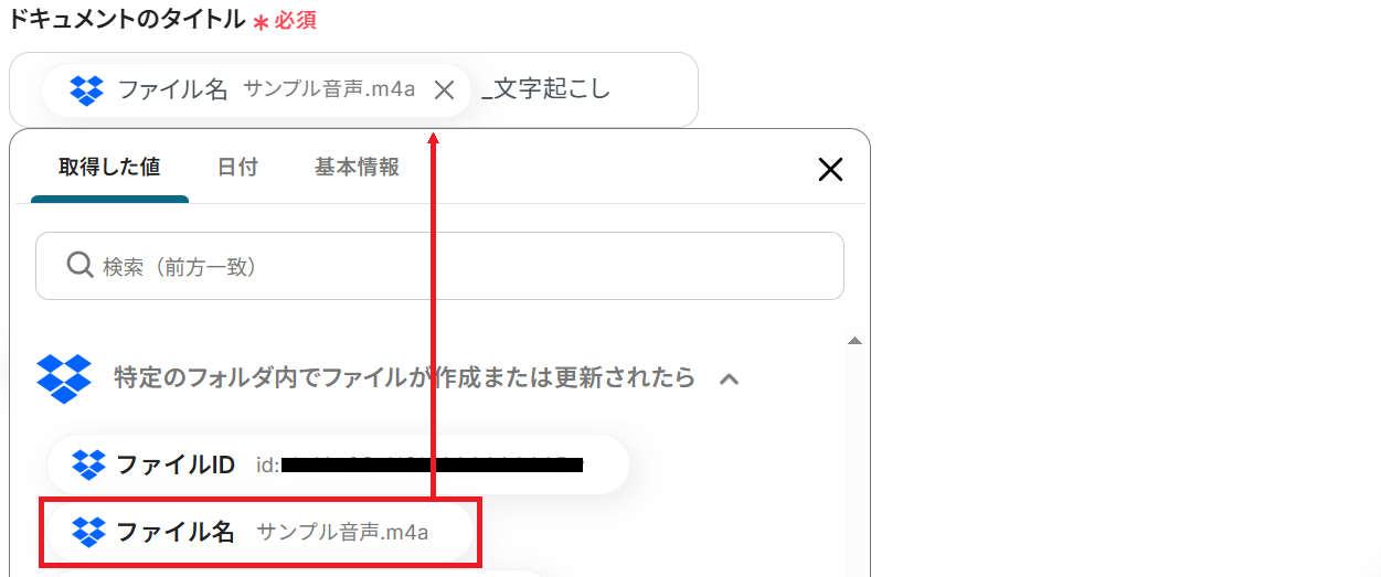 Dropboxに音声データがアップロードされたら、文字起こしを行い新規Googleドキュメントに結果を追加する