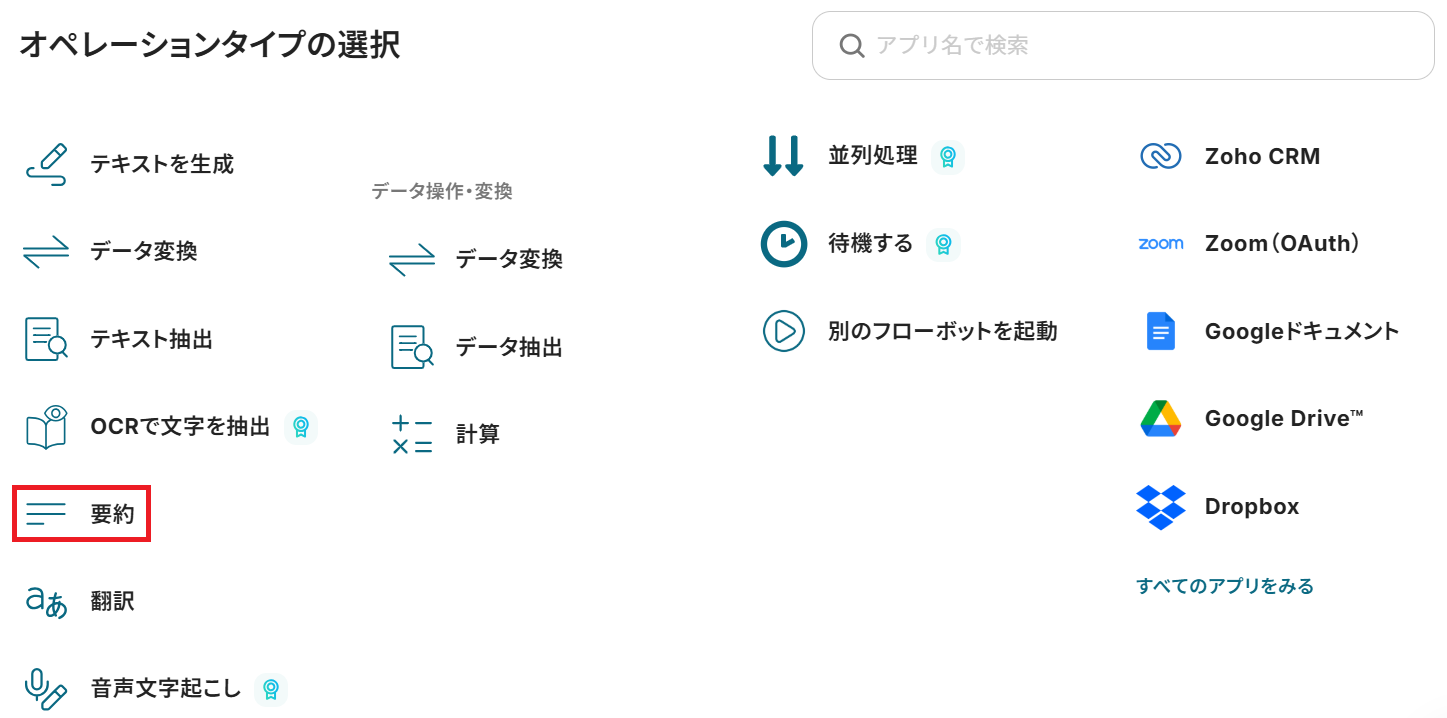A:要約オペレーションを追加することで可能です。そこで取得した値をステップ7の「追加するテキスト」に加えると、文字起こしそのものだけでなく要約も追記することができます。