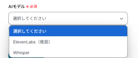 - 「音声データを文字起こしする」オペレーションでは、文字起こしの精度や特性に応じて、利用するAIモデルを複数の選択肢から任意で選択できます。