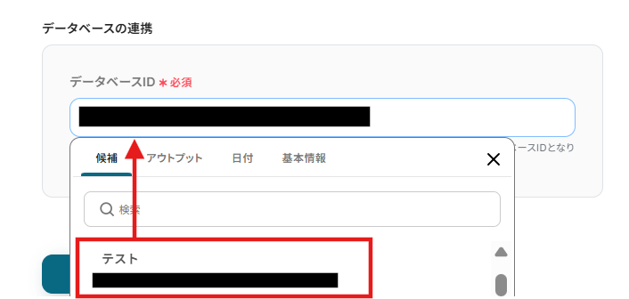 3.下にスクロールして、「データベースID」を候補から選択します。