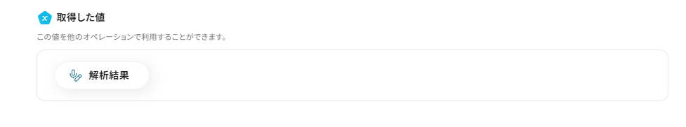 - Google スプレッドシートでレコードを追加するアクション設定では、文字起こし結果を任意で設定してください。